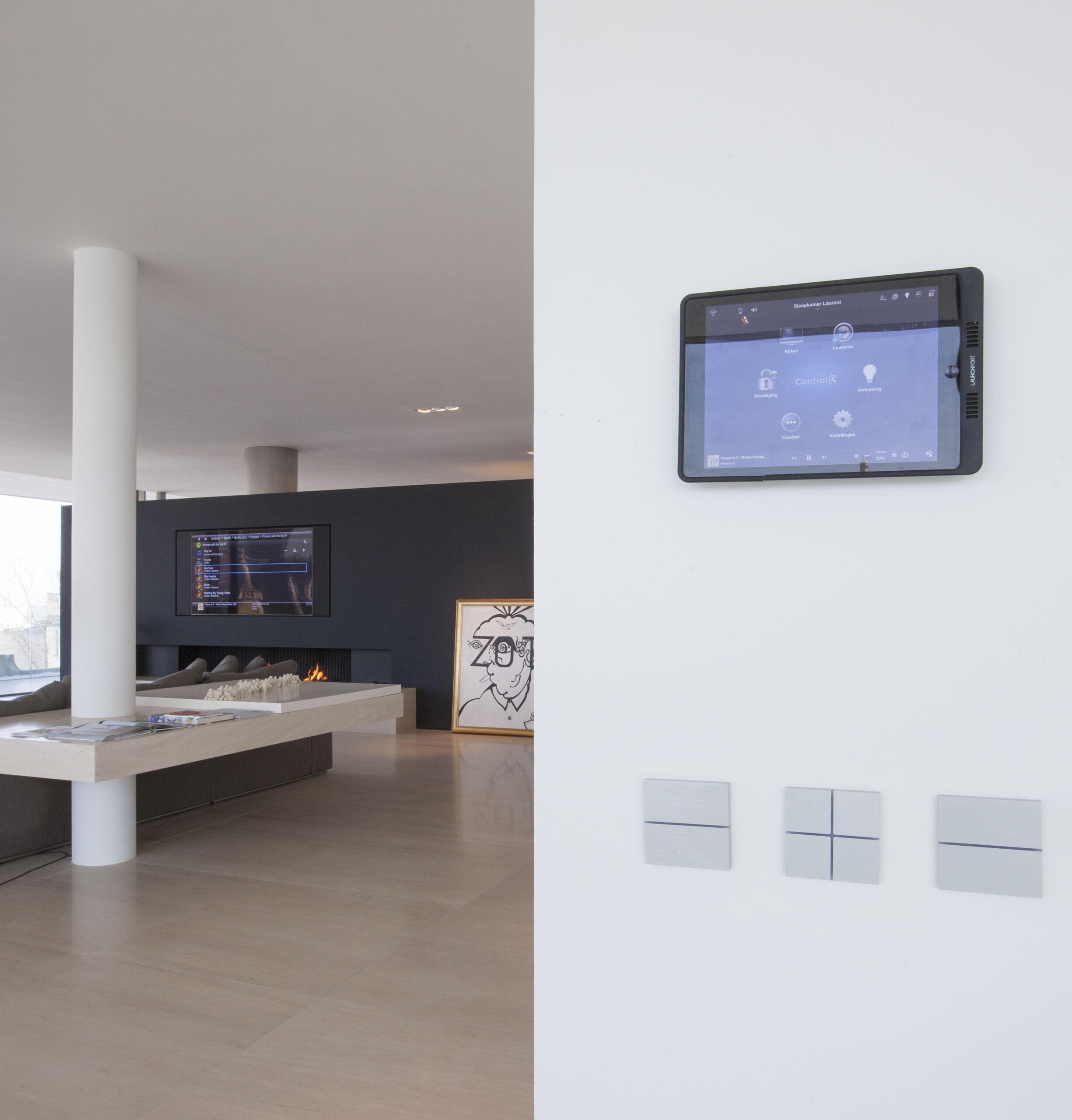 In this project, we installed advanced controls for both the gas fireplace and the television, giving residents complete control over ambience and entertainment. At the touch of a button, the gas fireplace can be lit, with the flames and heat intensity easily adjusted to the desired ambience. This not only provides comfort, but also a stylish addition to the interior.